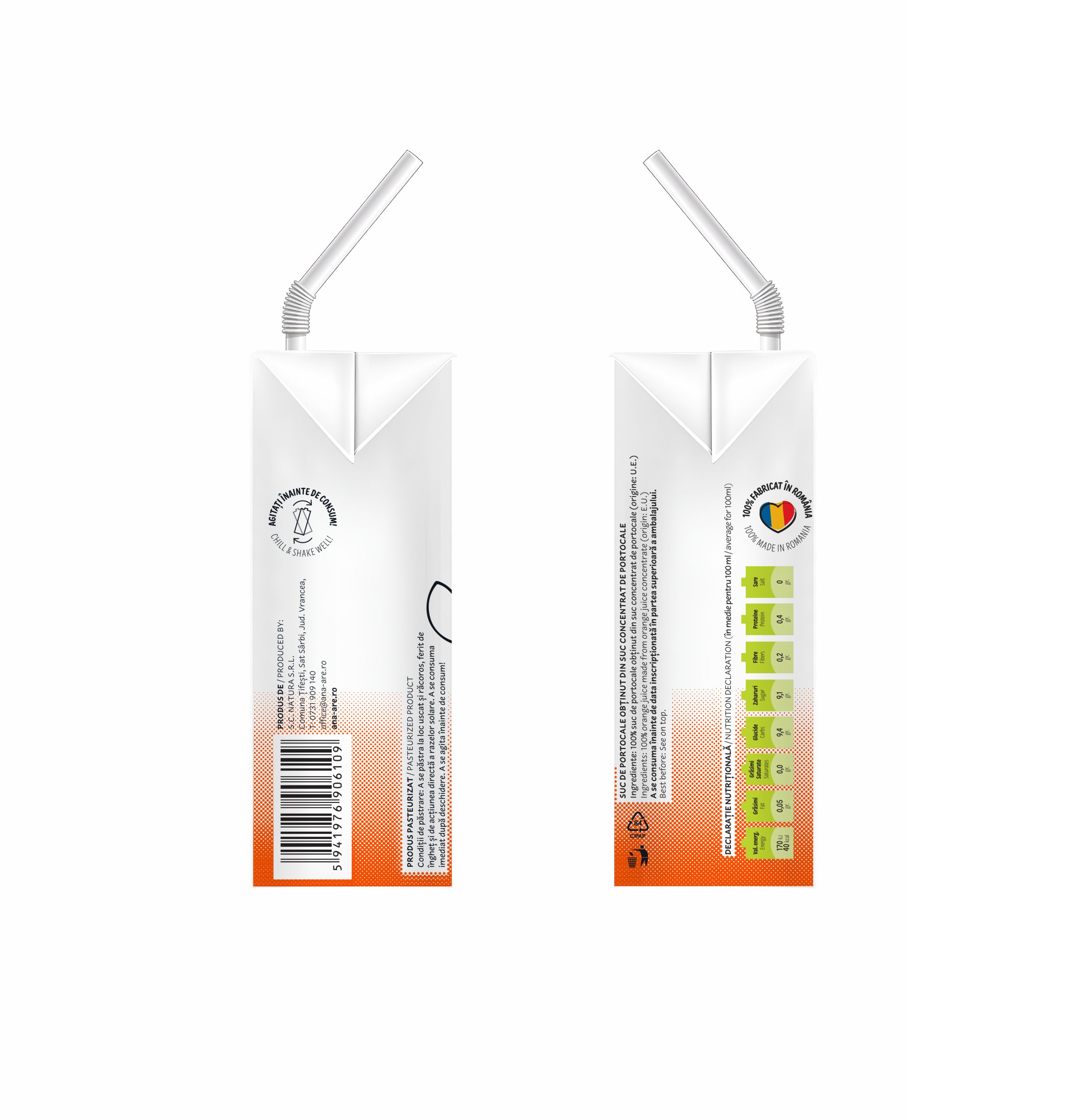 Ingrediente: 100% suc de portocale obținut din concentrat de portocale.